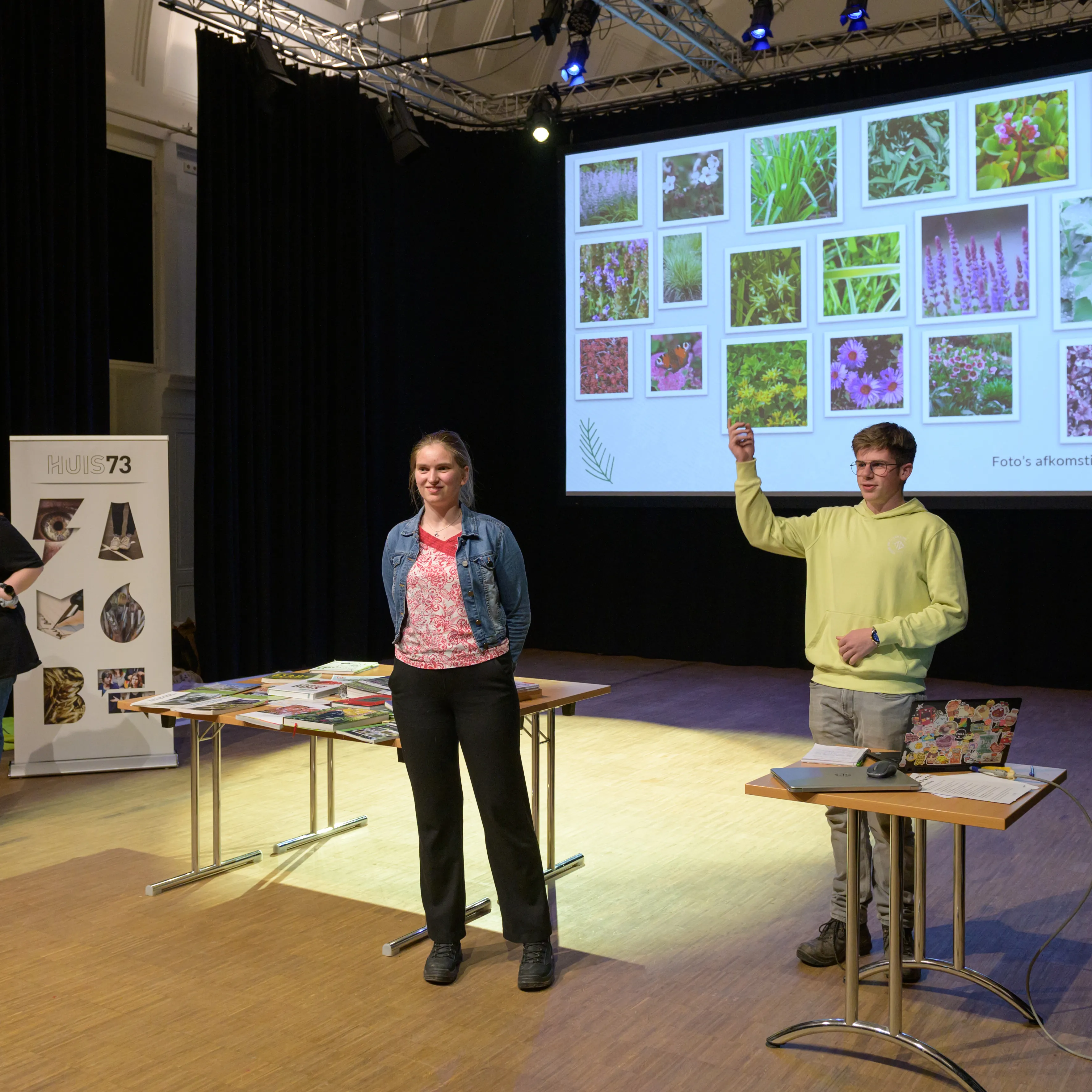 Aan het einde van de dag stonden de studenten op het podium om hun concept en beplantingsplan toe te lichten aan een jury bestaande uit Nan van Schendel, Mechthild Stuhlmacher en landschapsarchitect Maarten Grasveld. In de presentaties kwamen kennis over Huis73, storytelling en expertise vanuit de opleiding zichtbaar samen. Zo was er een idee om een bloementuin te creëren geïnspireerd op de schilderijen van Van Gogh en opperde een groep om een appelboom te plaatsen, wat een knipoog is naar het Geefhuis, een van de historische functies van het gebouw. Andere voorstellen waren om het logo van Huis73 in sedum te planten en om publiek te betrekken bij de totstandkoming en het onderhoud van de daktuin.